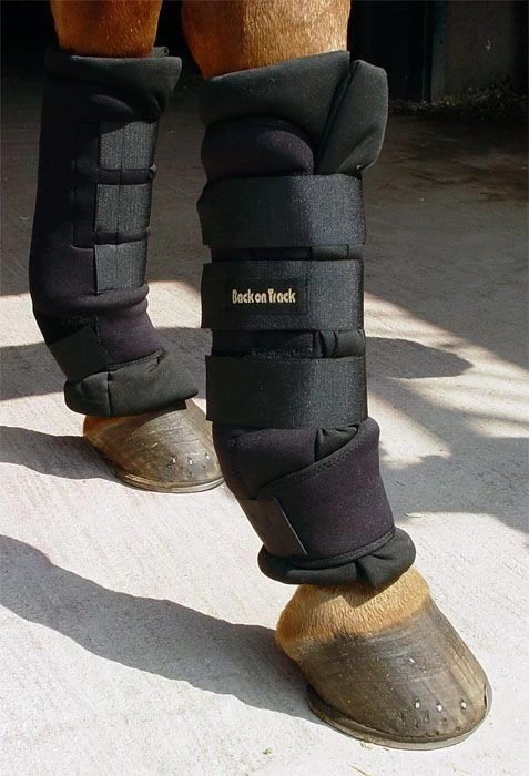 This Therapeutic horse leg wrap uses a shell of neoprene, inside is a pillow wrap with three Velcro closure.